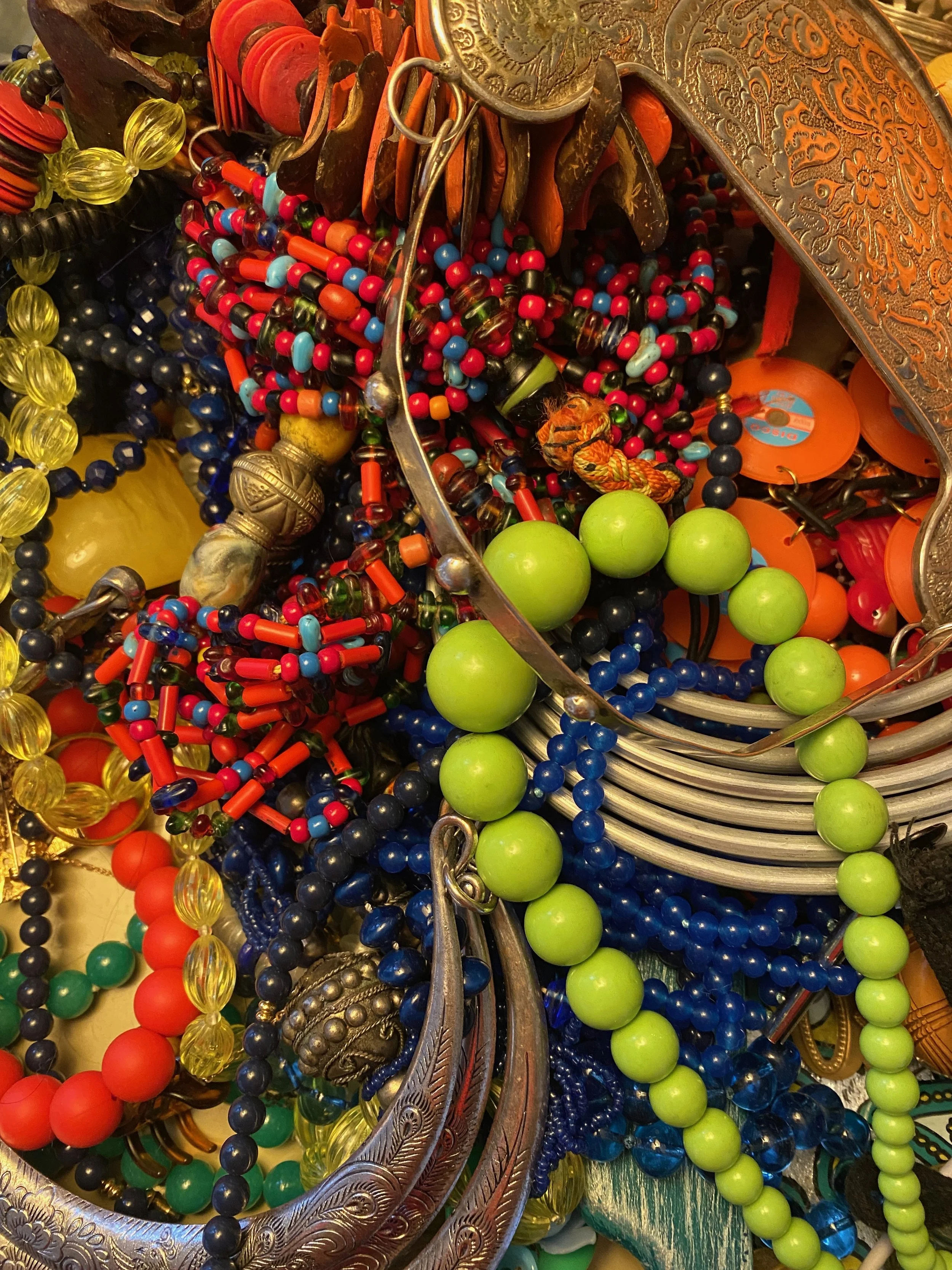 Flowers inspire me to be creative, which in turn brings me happiness. I love fresh-cut flowers for celebrations and entertaining. I also love summer bouquets cut from our perennial garden and the opportunity to display flowers in my weird collection of vintage vases. Finding vintage craft flowers made from various materials like crepe paper, felt, beads, glass, and fabric are also exciting for me because they will inspire me to make new things that I can give to people or wear. Lastly, I love wearing floral patterns from vintage 60s/70s designs to more abstract geometric patterns. I love mixing up bright colored floral patterns in my home and my wardrobe.