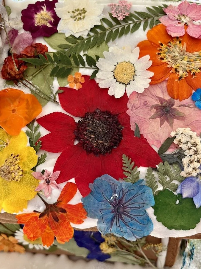 The pressed flowers used here are just craft supplies that can be found at a local art/craft store or online (links below). If you're the kind of person who’s already pressed your own flowers, of course those would work, too.