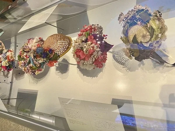 Flower-covered vintage hats by Sally Victor, House of Schiaparelli, & others