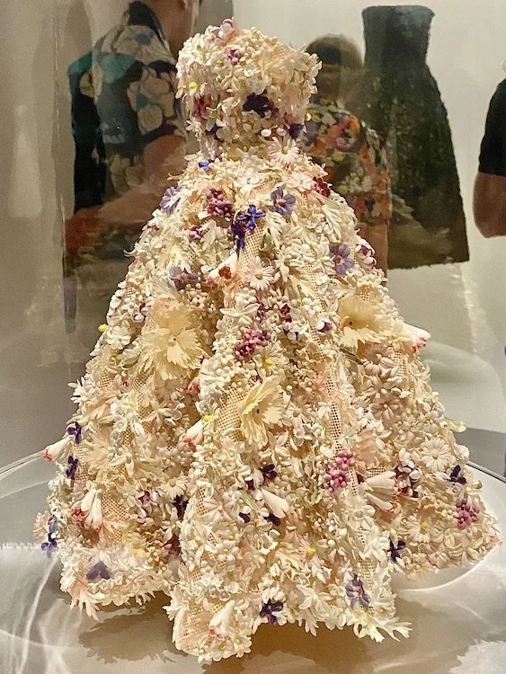 Throughout the show, botanical motifs, natural materials, and vibrant floral themes abound, through which the storytelling is enriched by contextual sensory experiences. Wanting to eschew traditional models of “look, but don’t touch” exhibitions while preserving the integrity of the pieces, the curatorial team built an expanded experience that illuminates the artistry of each piece.