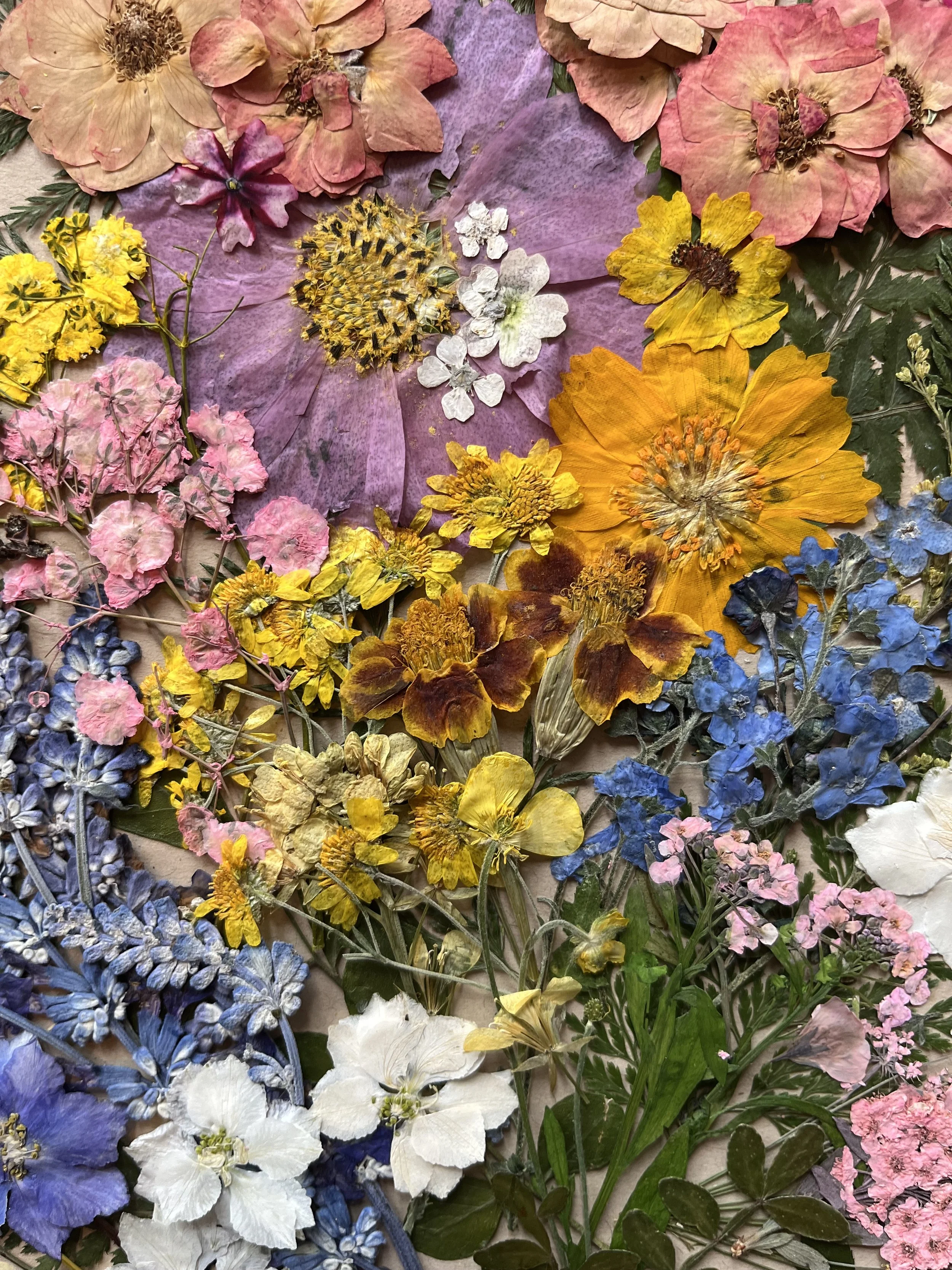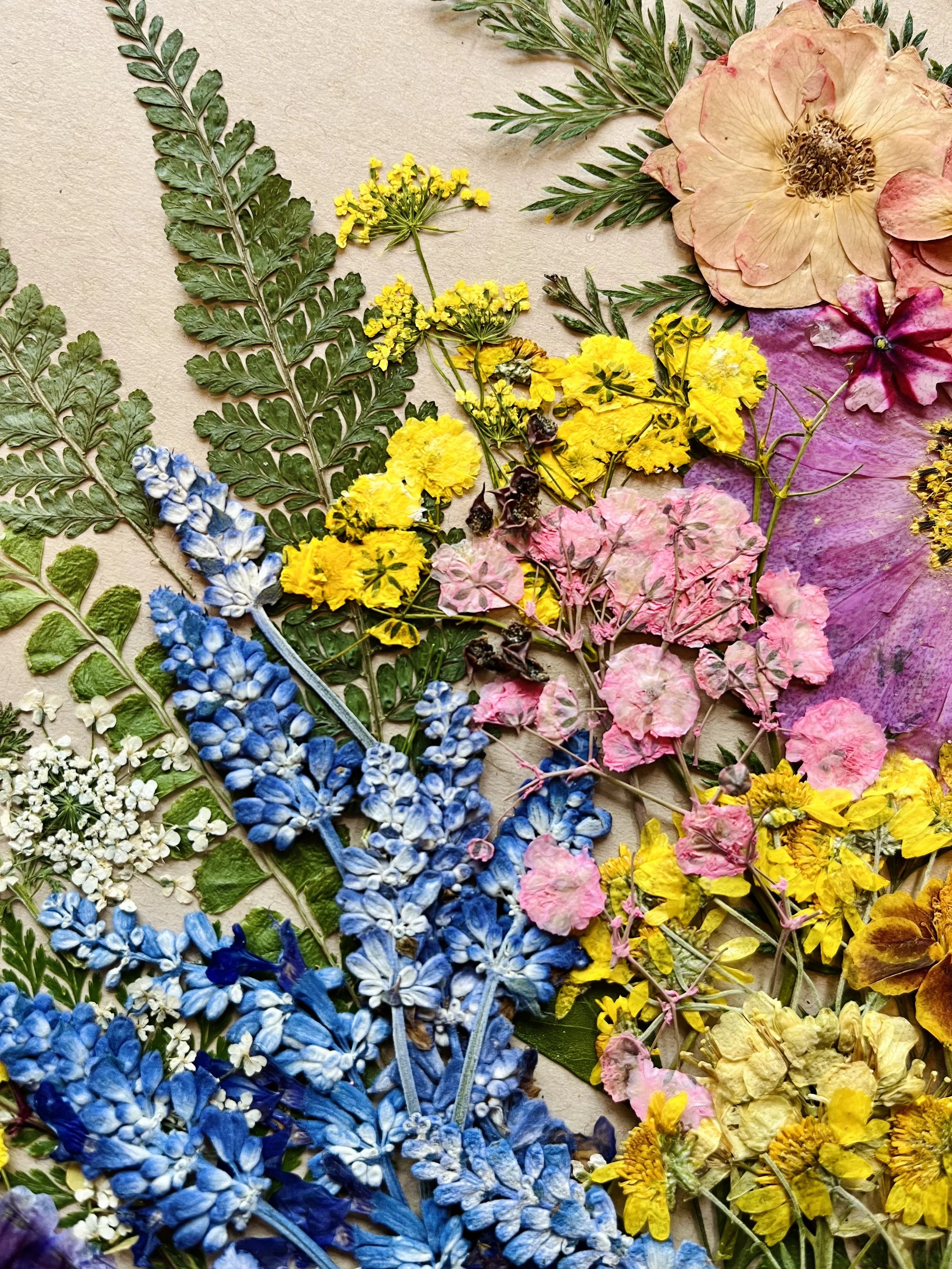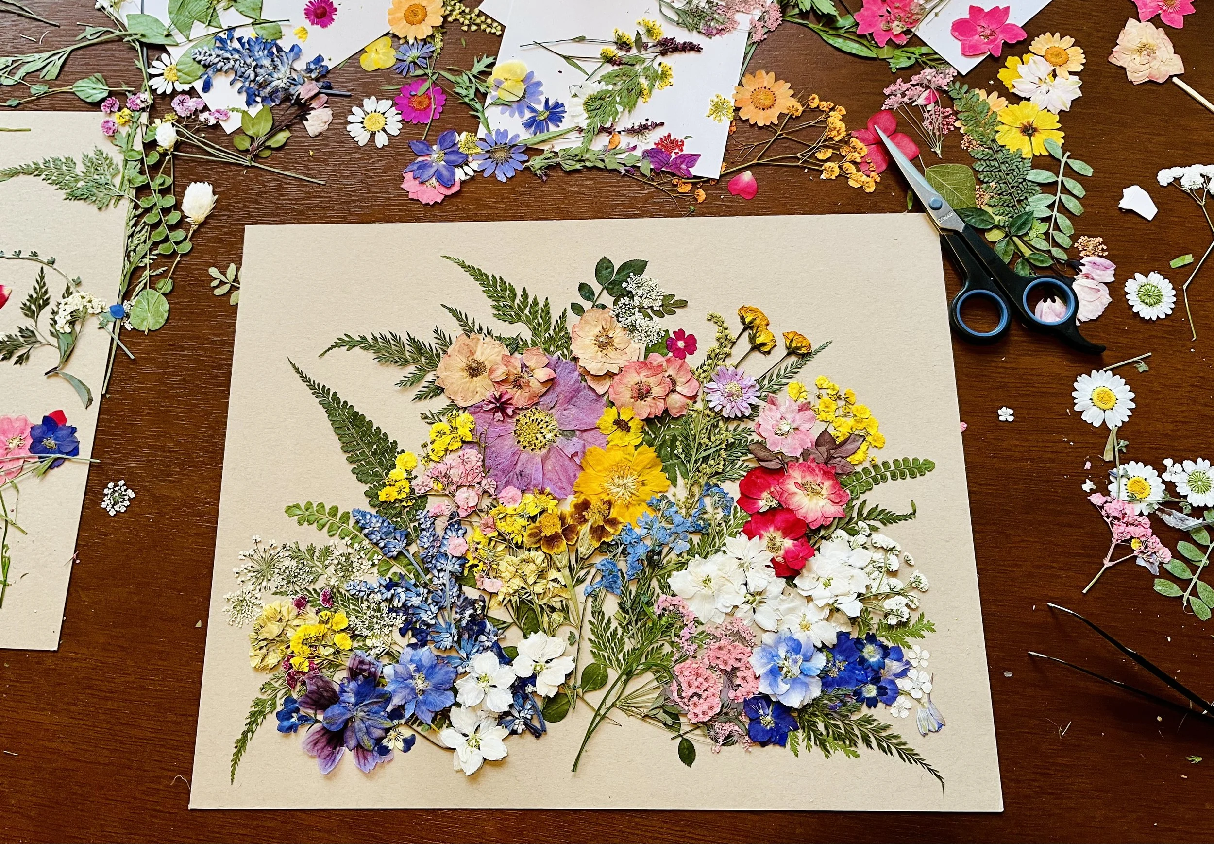 Creating your own pressed-flower family garden is relatively easy in that it doesn’t require any specialized skills, and it can be as minimalist or maximalist as you’d like it to be.